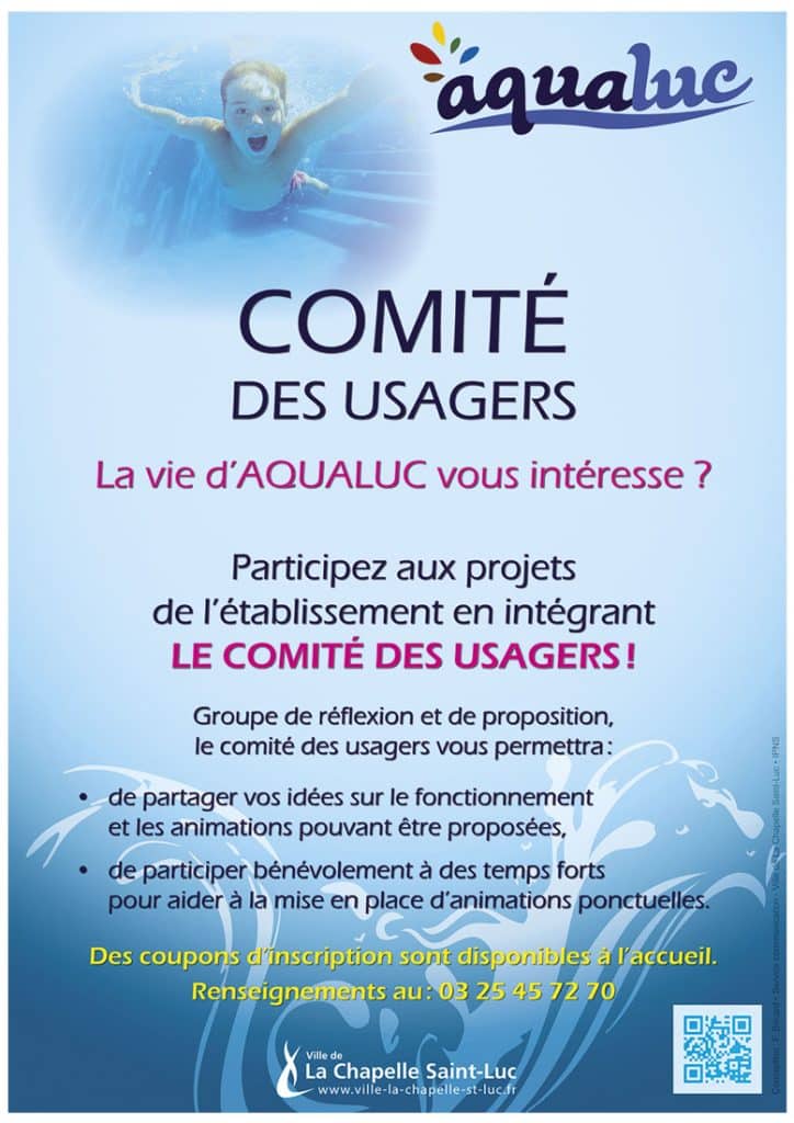 Si faire partie du comité des usagers vous intéresse, présentez-vous à l’accueil ou contactez Aqualuc par téléphone au 03 25 45 72 70.